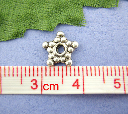 Estrellas y Copos de Nieve en Plata Antigua - Paquete de 5 Cuentas de 8mm x 8mm