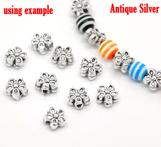 Espaciadores de Aleación de Zinc en Forma de Flor - Plata Antigua - 6mm x 6mm - Agujero de 1.3mm 2