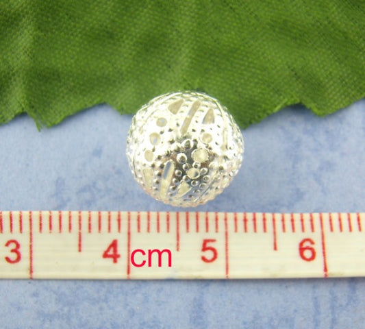 Cuentas Espaciador Filigrana Bola,Argentado Hueco 12mm Diámetro, Agujero: acerca de 1.5mm, 6 Unidades