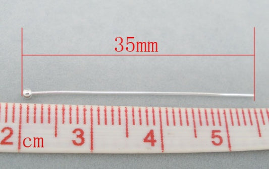 Alfileres de cabeza de bola Cobre de Argentado,3.5cm de longitud 0.5mm (24 gauge). 10 Unidades