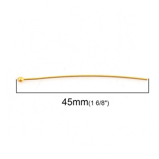 Alfileres de cabeza de bola Cobre de Chapado en Oro, 45mm de longitud 0.7mm (24 gauge)