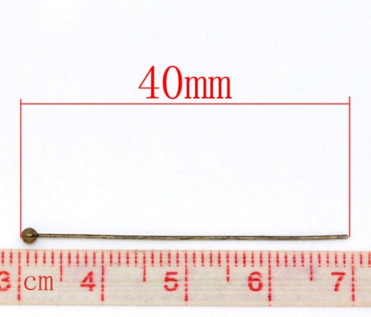 Alfileres de cabeza de bola Cobre de Tono Bronce,40mm de longitud 0.5mm (24 gauge). Paquete 10 Unidades