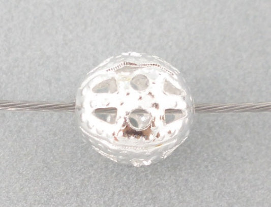 Cuentas Espaciador Filigrana Bola,Argentado Hueco 6mm Diámetro, Agujero: acerca de 0.6mm. 8 Unidades