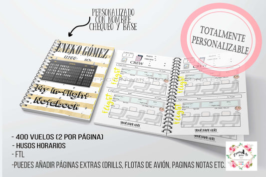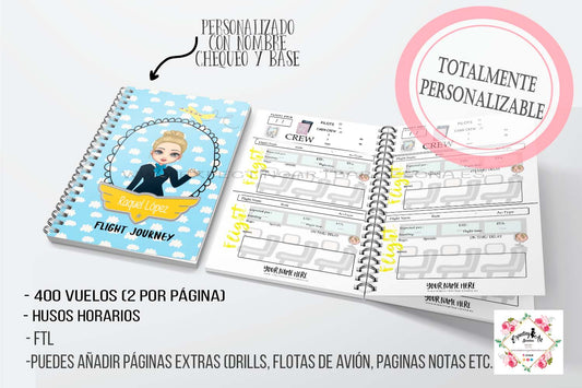 Agenda de vuelo personalizable para Cabin Crew. Modelo " Alas para volar".