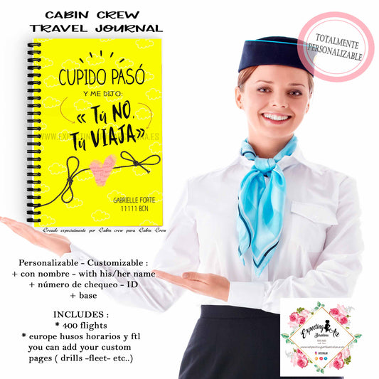 Agenda de vuelo para cabin crew personalizable.| Modelo " Cupido me dijo: tu no, tu viaja".