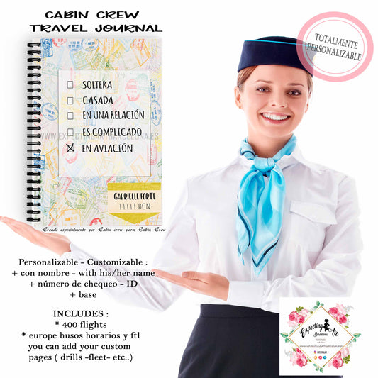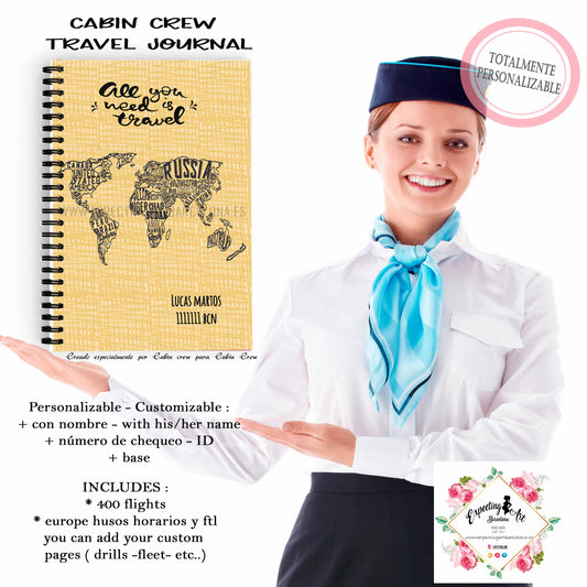 Agenda de vuelo para cabin crew personalizable. Modelo " All you need is Travel".