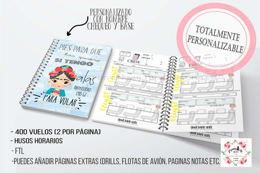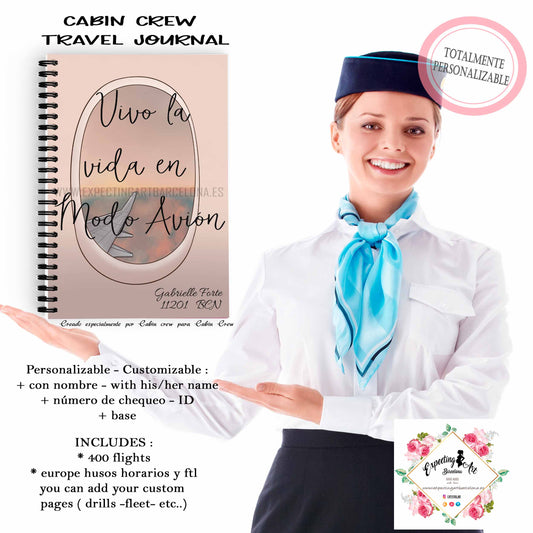 Agenda de vuelo personalizable para Cabin Crew. Modelo " Vivo la vida en modo avión".
